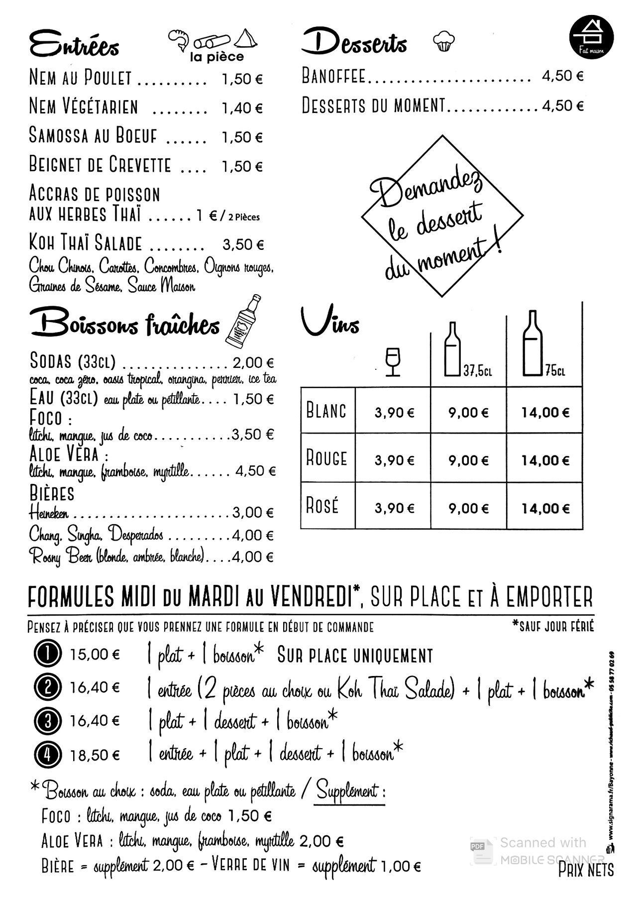 Nous vous remercions par avance de passer commande par téléphone pour vos commandes à emporter